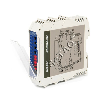 AD-S600/601-C稱重AD控制模塊(又稱數字稱重變送器)是SeTAQ公司開發的帶開關量控制功能的稱重AD模塊。其基本功能是將稱重傳感器的模擬信號變成數字重量信號;再經過動態數字濾波和靜態數字濾波,使數字重量信號響應更快更準確,通過串口可將數字重量信號發送出去;同時通過D/A轉換將數字重量信號變成模擬的4-20mA電流信號或0-5(10)V的電壓信號(僅對AD-S600-C)。
